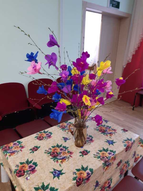В преддверии первомайских праздников обслуживаемые отделений социально-бытового и социально-медицинского обслуживания на дому п. Шеманиха на мастер-классах изготавливали очень красивые весенние цветочные веточки.