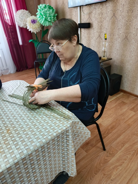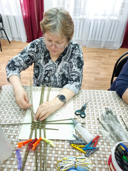 В отделении дневного пребывания отдыхающие на занятиях сплели корзину из бумажной лозы.