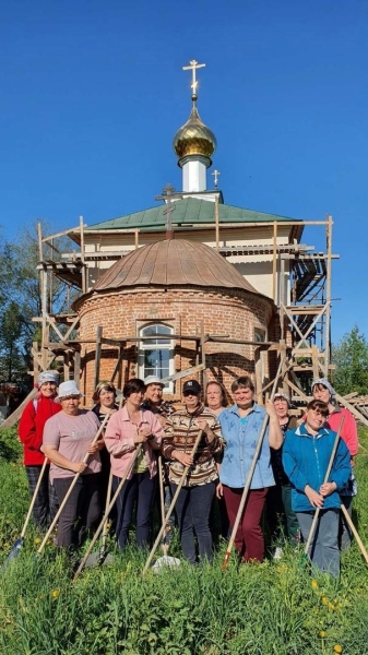 Работы очень много и любая помощь не бывает лишней. Социальные работники социально-бытового отделения №8 не остаются в стороне и активно помогают в благоустройстве территории возле храма.