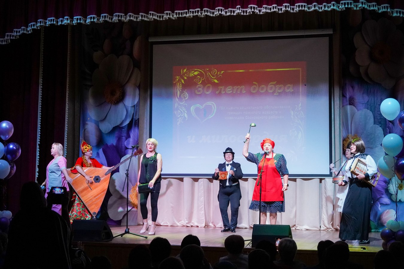 В культурном центре «Березка» состоялся грандиозный праздник — Центр социального обслуживания отметил своё тридцатилетие. Гостей встречали приветливые «стюардессы», ведь торжество прошло в необычном формате «праздничного юбилейного полета».